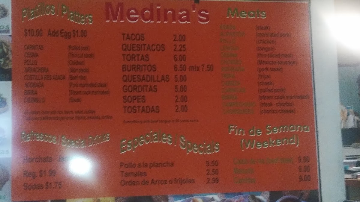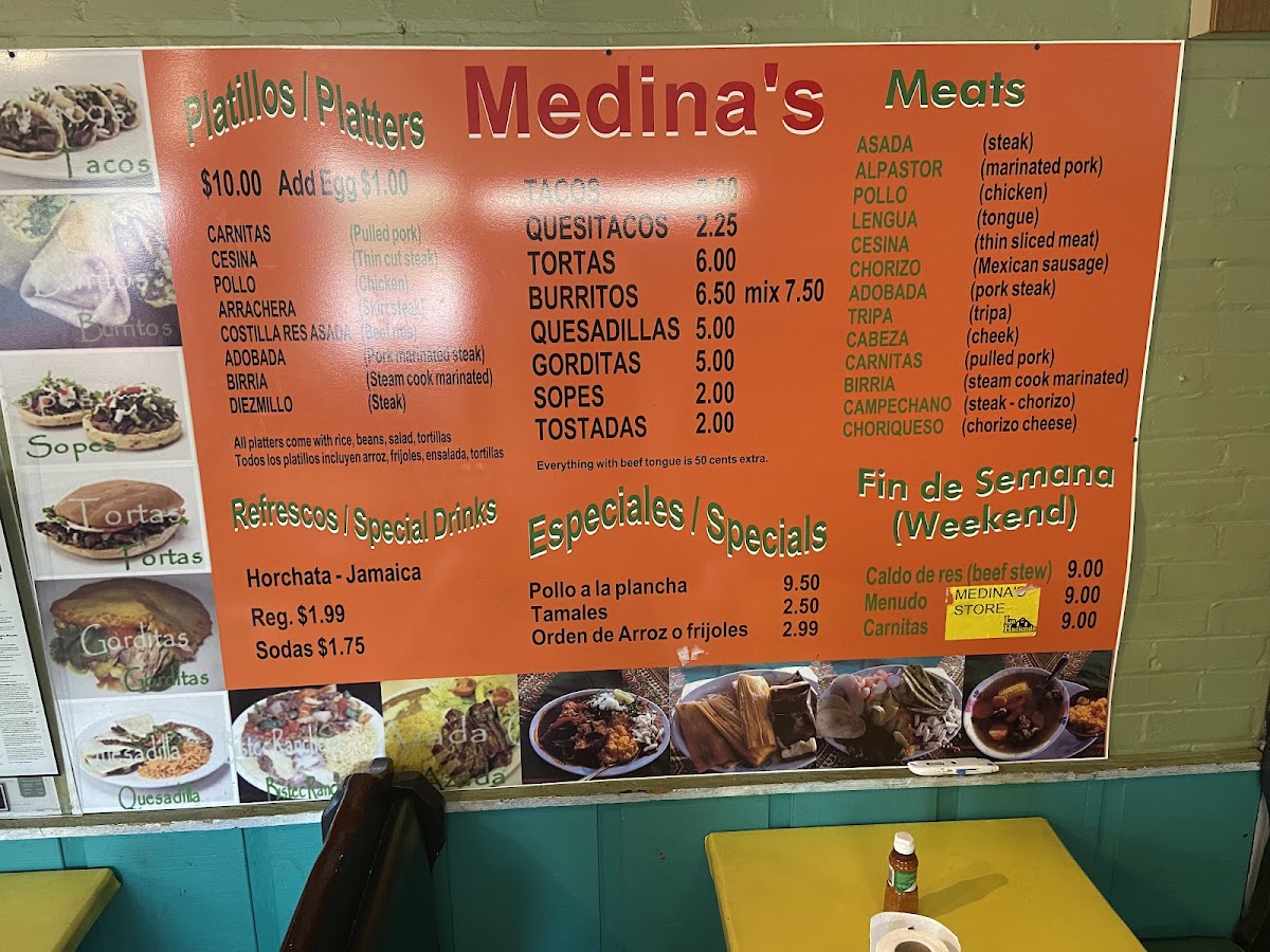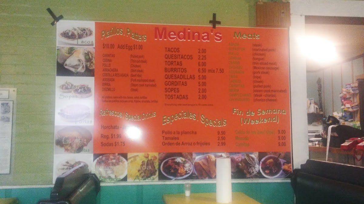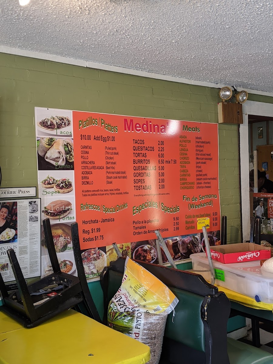 At Medina's Mexican Store, you’ll find a menu packed with flavorful, authentic Mexican dishes that will transport your taste buds straight to the heart of Mexico. Located in Henderson, KY, this vibrant spot offers a mix of traditional favorites and unique creations. Whether you're craving sizzling fajitas, a perfectly crafted burrito, or freshly made tacos, you'll find something that hits the spot. Their menu also features a variety of sides, from crispy chips and guacamole to refreshing salsas that complement each dish perfectly. Every meal is prepared with fresh ingredients and seasoned to perfection, giving you an experience that feels like home with every bite. Whether you're here for a quick lunch or a relaxed dinner, Medina's Mexican Store is the place to indulge in delicious, hearty meals that never disappoint.